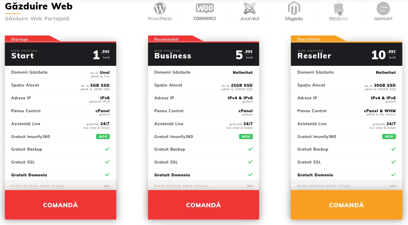 Important! When purchasing a hosting package with a minimum billing period of one year, the free registration or transfer of a domain from the following extensions is included in the offer: .ro, .eu, .com, .net, .org, .info, .biz, .us, .co.uk. The domain is registered/transferred free of charge only in the first billing year; thereafter, the applicable fee for each extension will apply.