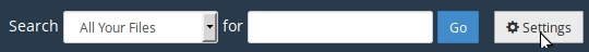• To activate the hidden files listing we will click on the Settings button at the top right of the File Manager interface.